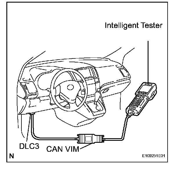 b. Connect the cable of the intelligent tester (with CAN VIM) to the DLC3, turn the ignition switch ON and attempt to use the intelligent tester. If the screen displays a communication error message, a problem exists in the vehicle side or with the tester side.