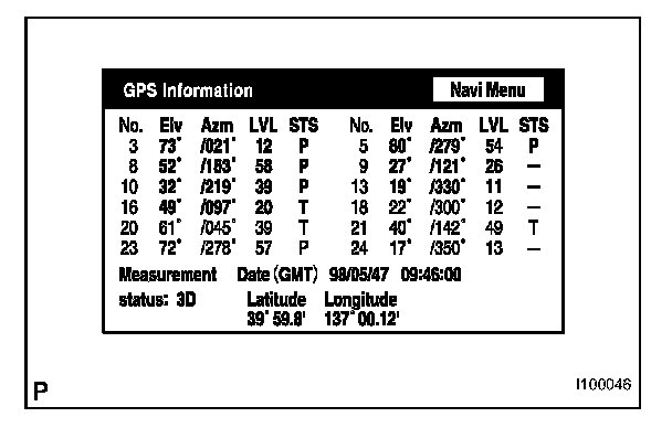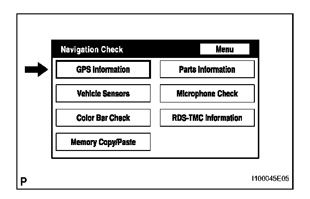 a. Select "GPS Information" from the "Navigation Check" screen.