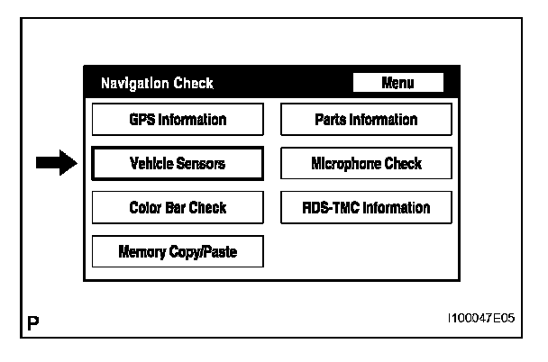 a. Select "Vehicle Sensors" from the "Navigation Check" screen.