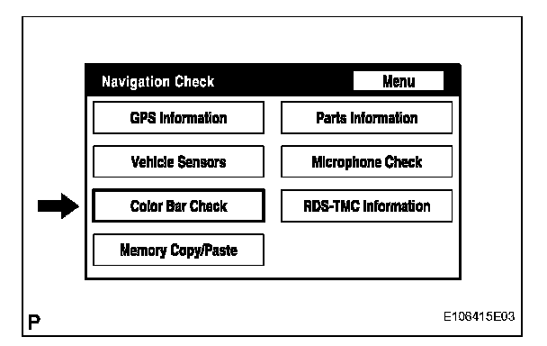 a. Select "Color Bar Check" from the "Navigation Check" screen.