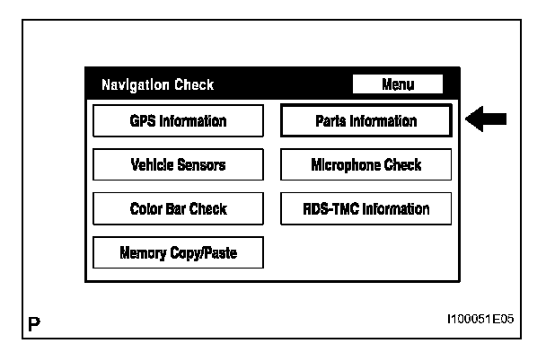 a. Select "Parts Information" from the "Navigation Check" screen.
