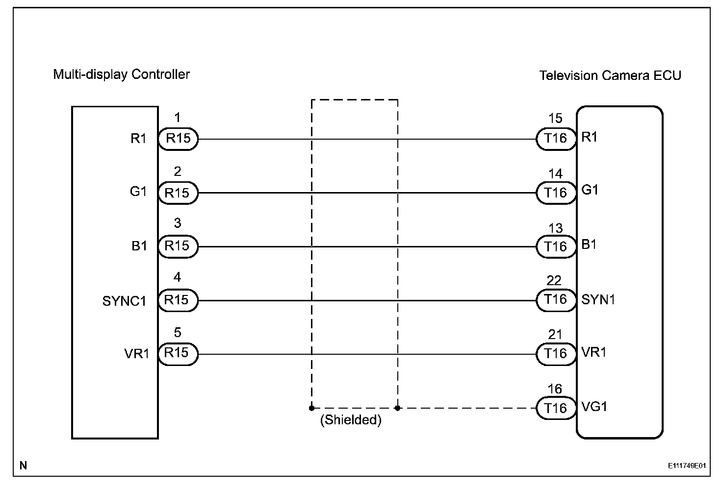 This is the display signal circuit from the multi-display controller to the television camera ECU.