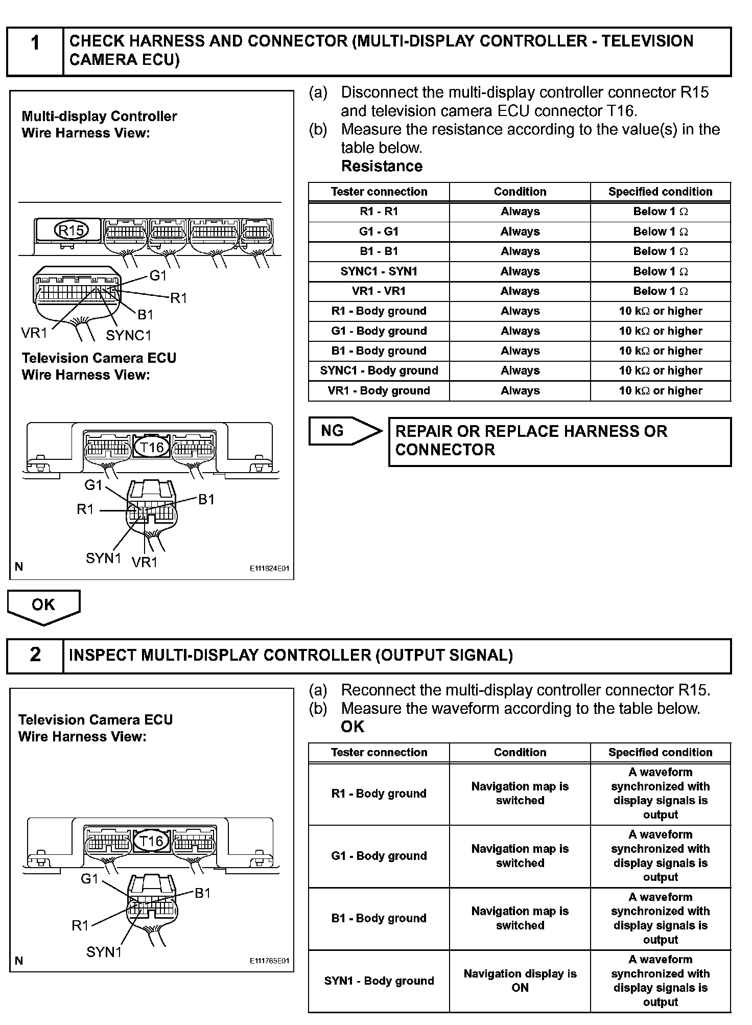 Display Signal Circuit Between Multi-Display Controller and Television Camera ECU