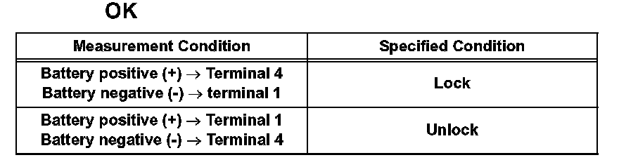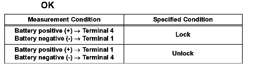 a. Apply battery voltage to the door lock and check operation of the motor.