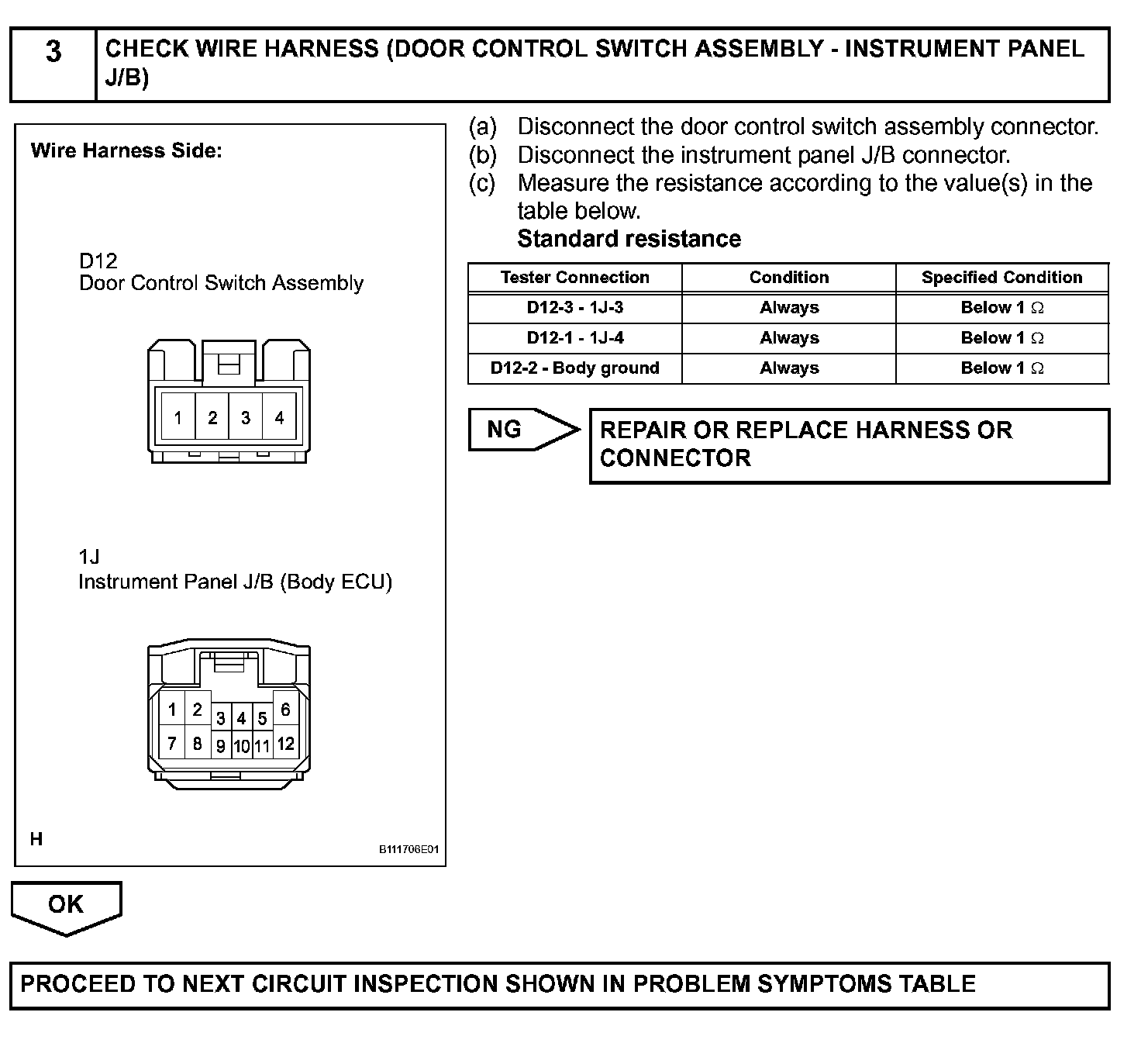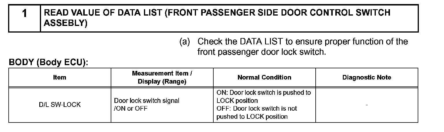 The body ECU also applies constant voltage to terminal 1 of the door control switch via terminal UL1. When the door control switch is operated to unlock the doors, current flows from terminal UL1 to terminal 1.The body ECU determines that this is door unlock request signal input.