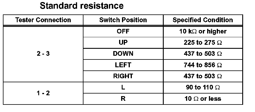 b. Measure the resistance according to the value(s) in the table given when the switch is operated.