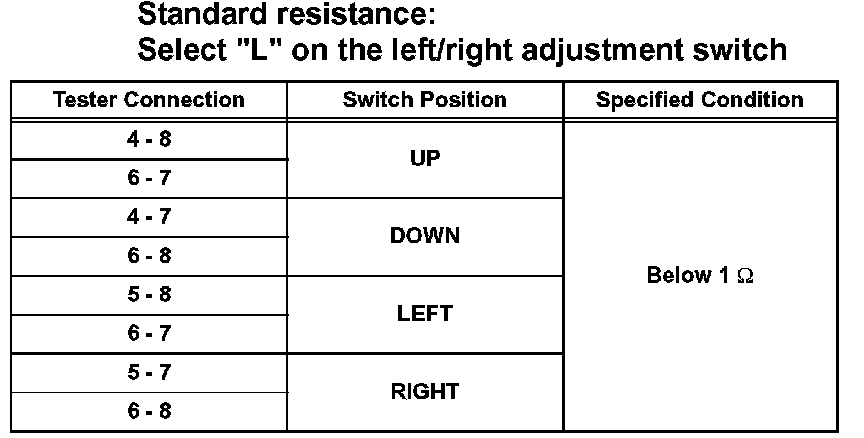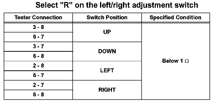 2. INSPECT OUTER MIRROR SWITCH (W/O MEMORY SEAT)