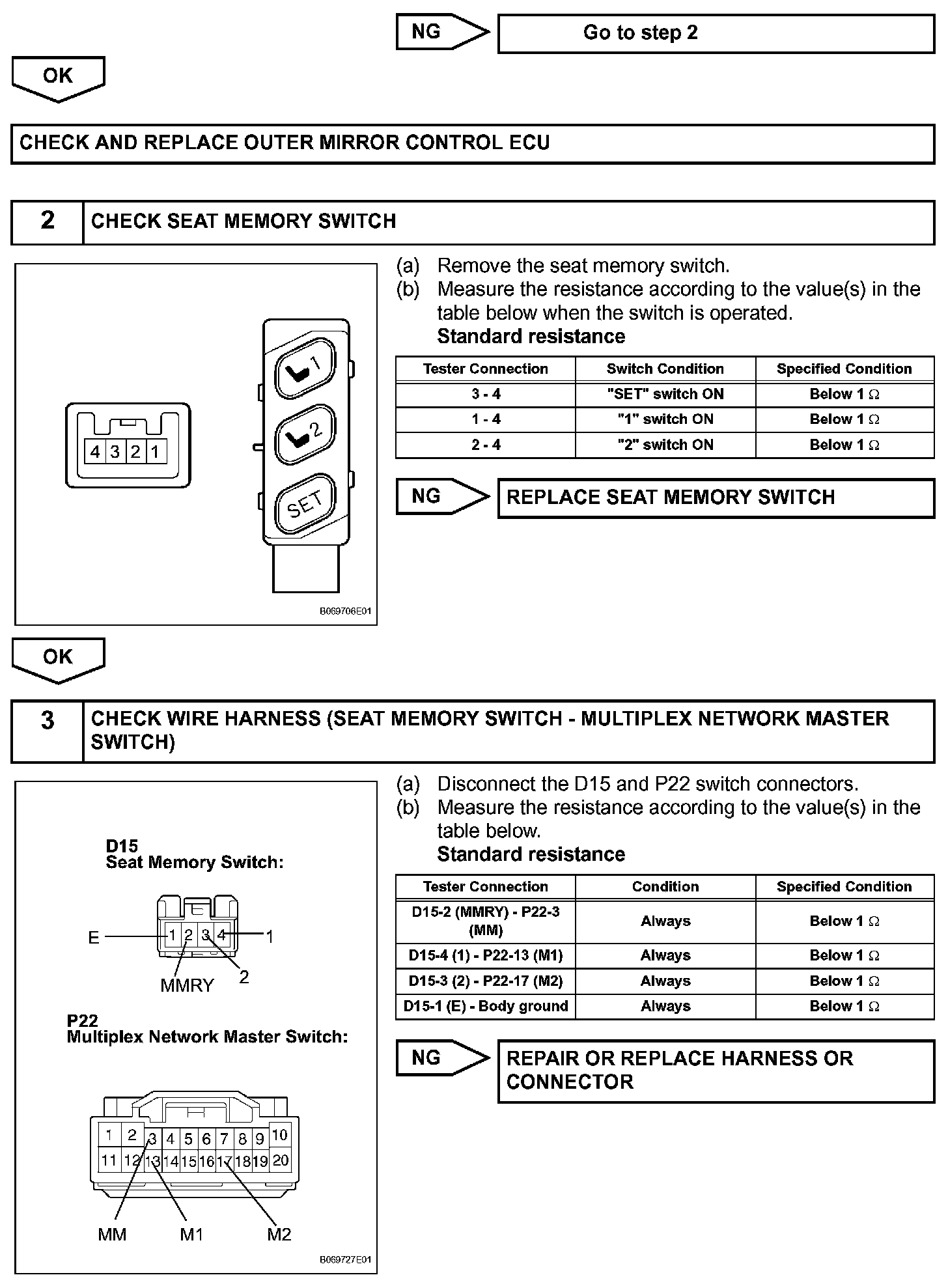 HINT: The power mirror control system is a part of the multiplex communication system. This system features shared communication wiring that reduces the wiring complexity of the communication lines. The first step in any repair is to confirm the proper operation of the communication system. Proceed with troubleshooting after the communication has been verified (See the Multiplex Communication System).