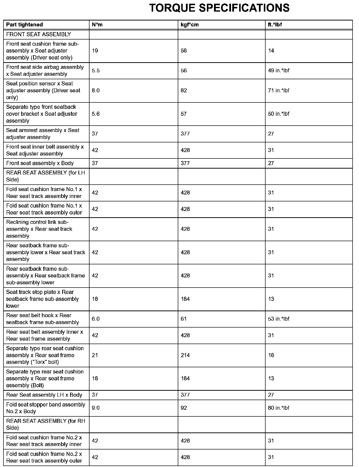 Seat-Torque Specifications (Part 1):