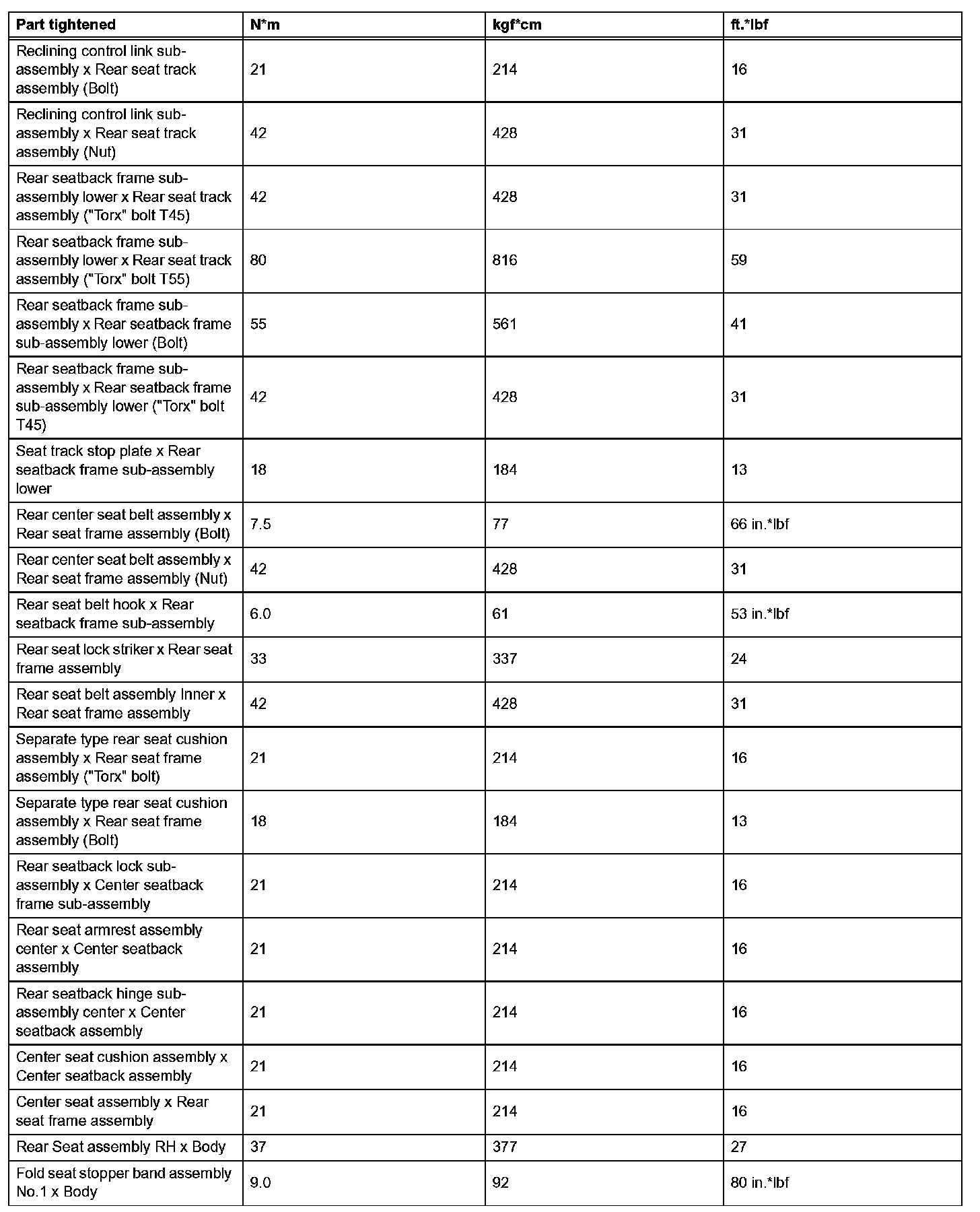 Seat-Torque Specifications (Part 2):
