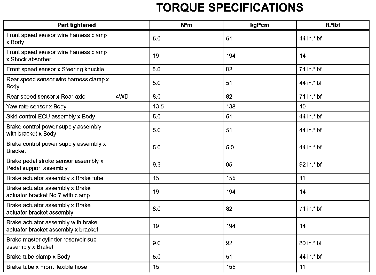 Brake Control-Torque Specifications: