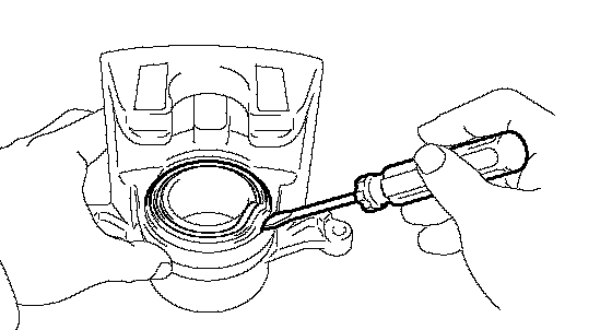 a. Using a screwdriver, remove the piston seal from the disc brake cylinder assembly.