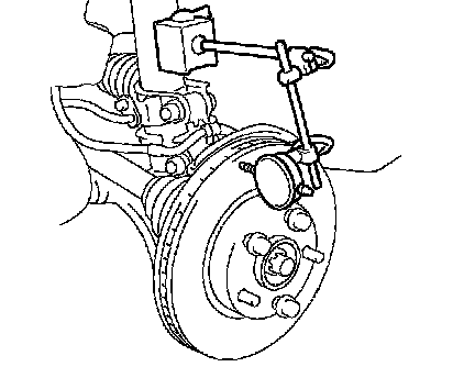 b. Using a dial indicator, measure the disc runout 10 mm (0.39 inch) away from the outer edge of the front disc.