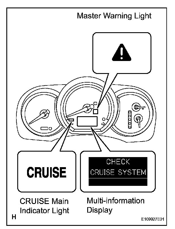 a. The CRUISE main indicator light keeps blinking until the main switch is turned off, the master warning light comes on with the warning sound "Pop", and the display shows "CHECK CRUISE SYSTEM". The cruise control operation is suspended until turning the main switch ON again. The auto cancel function deletes the stored vehicle speed and cancels the cruise control operation in the following conditions.