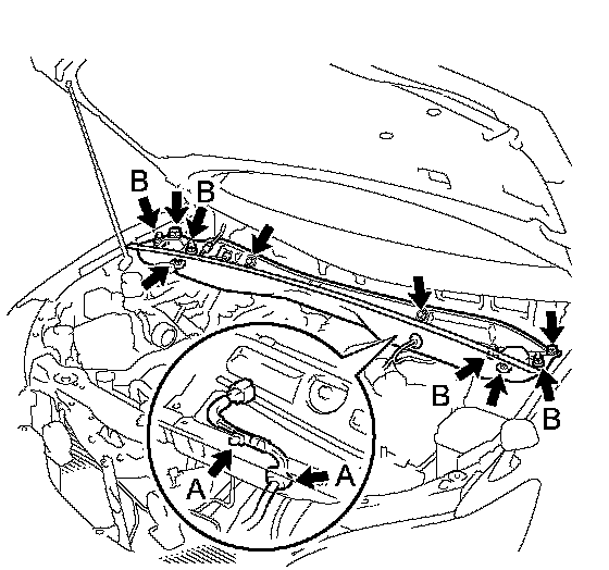 b. Remove the 4 shock absorber nuts (B).