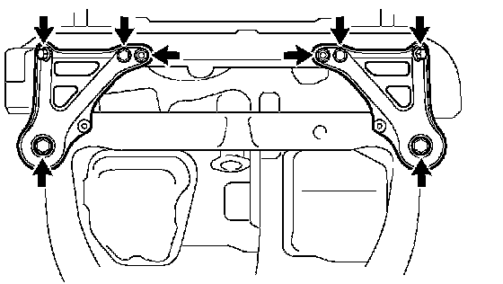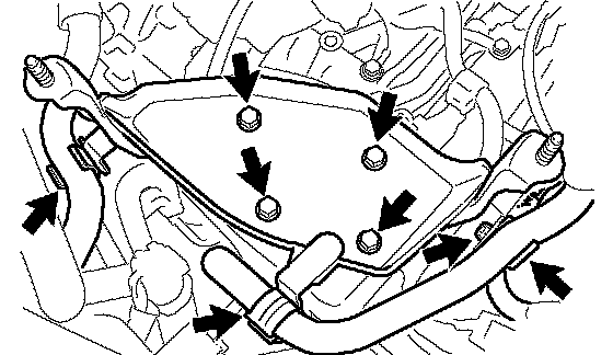 c. Remove the 6 bolts and 2 nuts, then remove the front suspension member brace rear RH and LH.
