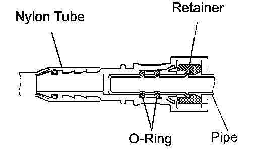 ^ Do not allow any scratches or foreign objects on the parts when disconnecting, as the fuel tube connector has the O-rings that seal the pipe.