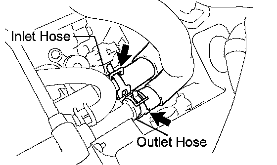 a. Using pliers, grip the claws of the clip and slide the clip to disconnect the heater water inlet hose.