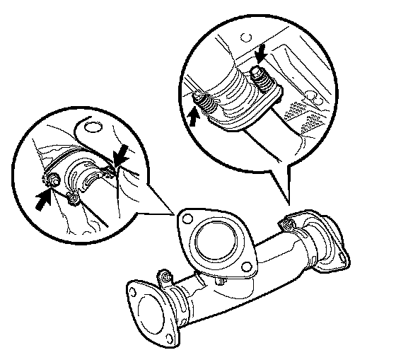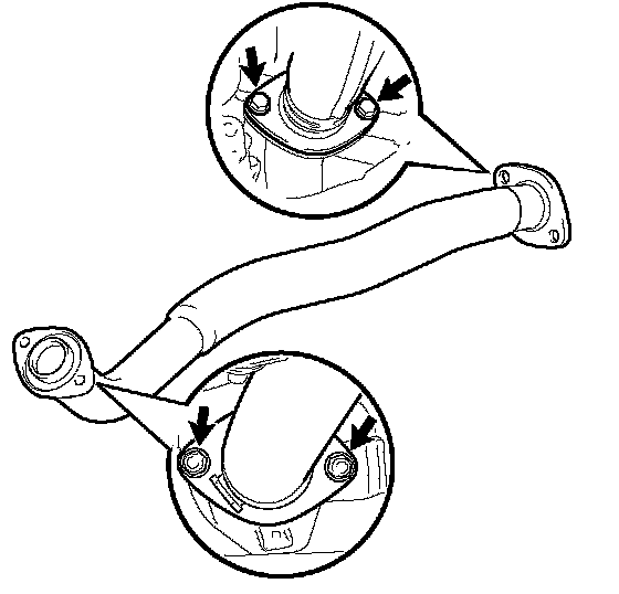 b. Remove the 2 bolts, 2 nuts and exhaust pipe assembly front.