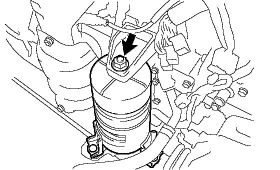b. Remove the nut and separate engine mounting insulator FR.