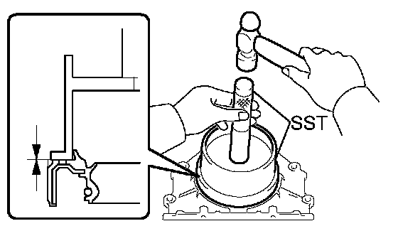 a. Using SST and a hammer, tap in a new oil seal until its surface is flush with the oil pump body edge.
