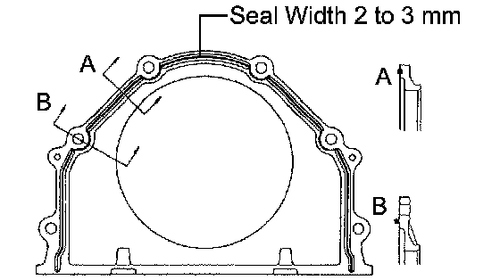 b. Apply a continuous bead of seal packing (Diameter 2 to 3 mm (0.08 to 0.12 inch)) as shown in the illustration.