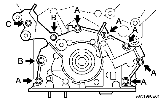 e. Install the oil pump with the 9 bolts. Tighten the bolts uniformly in several steps.