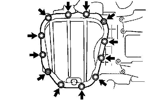 ^ Install the oil pan within 3 minutes after applying seal packing.