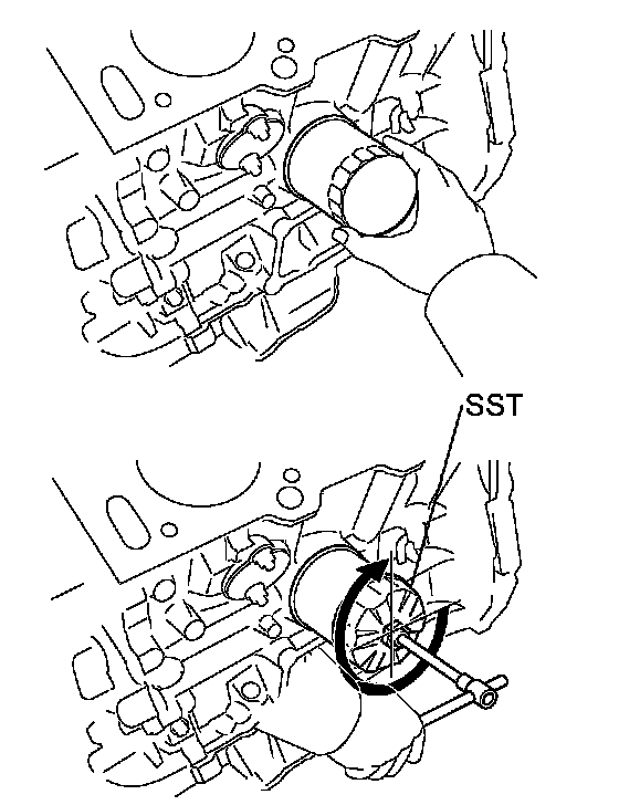 d. Lightly screw the oil filter into place, and tighten it until the gasket contacts the seat.