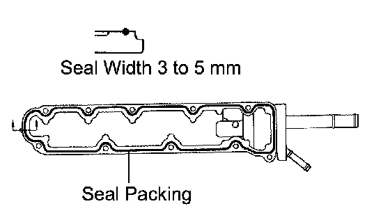 b. Apply a continuous bead of seal packing (Diameter 3 to 5 mm (0.12 to 0.20 inch)) as shown in the illustration.