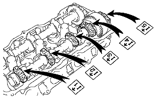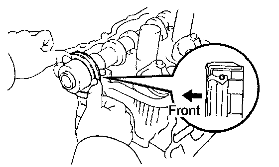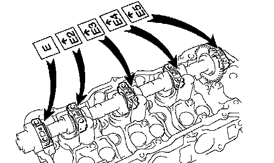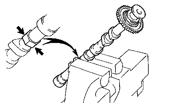NOTICE: Since the thrust clearance of the camshaft is small, the camshaft must be kept level while it is being installed. If the camshaft is not kept level, damage to the cylinder head or to the camshaft may result. To avoid this, the following steps should be carried out.
