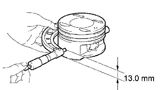 a. Using a micrometer, measure the diameter of the piston. When measuring the diameter, attach the micrometer to a location where 13.0 mm (0.512 inch) above from the piston bottom at the right angles to the piston pin hole.