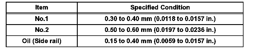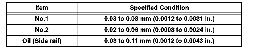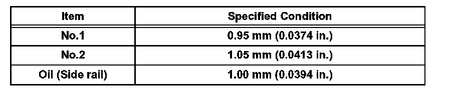 If the end gap is greater than the maximum, replace the piston ring. If the end gap is greater than the maximum even with a new piston ring, replace the cylinder block.