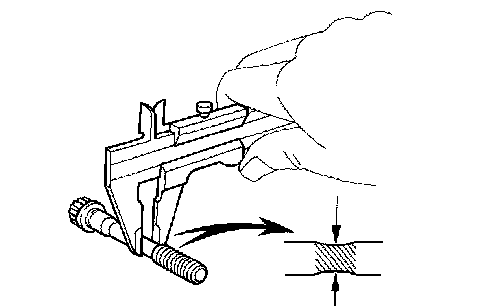 If the diameter is less than the minimum, replace the bolt.