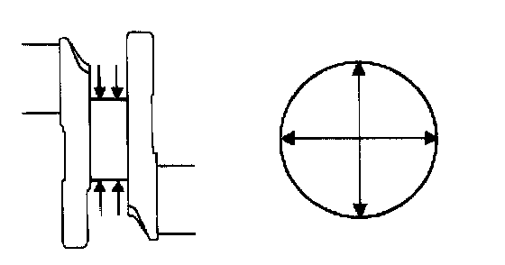 c. Check each main journal for taper and out-of-round as shown.