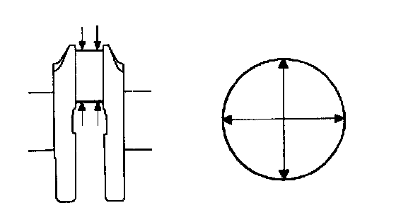 e. Check each crank pin for taper and out-of-round as shown.