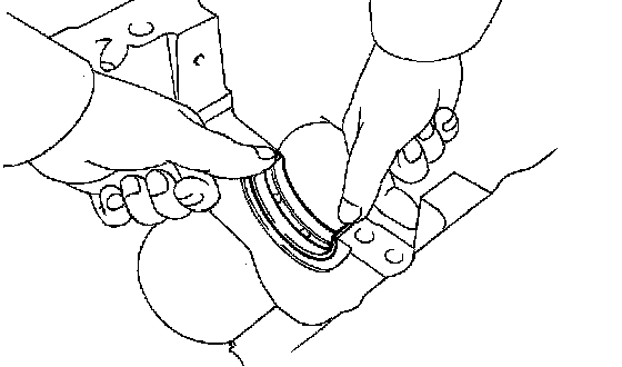 d. Check the piston pin fit at normal room temperature, coat the piston pin with engine oil, and push it into the connecting rod with your thumb.
