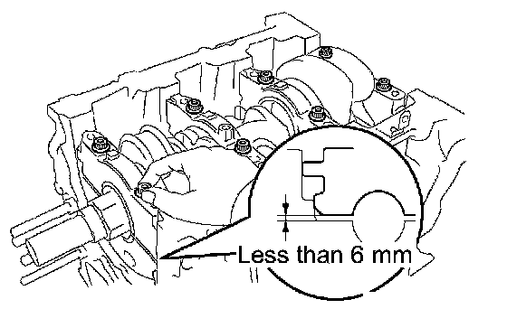 i. Install the main bearing cap by hand until clearance between the cylinder block and the bearing cap becomes 6 mm (0.23 inch) or less.