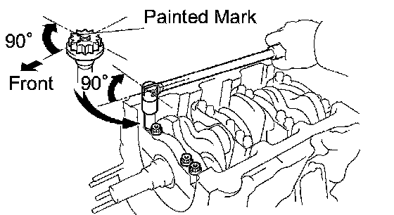 m. Mark the front side of the bearing cap bolts with paint.
