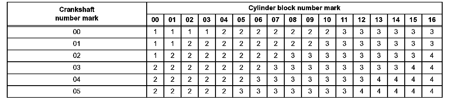 s. If replacing a bearing, replace it with one having the same number. If the number of the bearing cannot be determined, select the correct bearing by adding together the numbers imprinted on the cylinder block and crankshaft, then refer to the table for the appropriate bearing number. The No. 1 and No. 2 journal bearings come in sizes, marked 3, 4, 5, 6 and 7. The No. 3 and No. 4 journal bearings come in 5 standard bearing sizes, marked 1, 2, 3, 4 and 5.