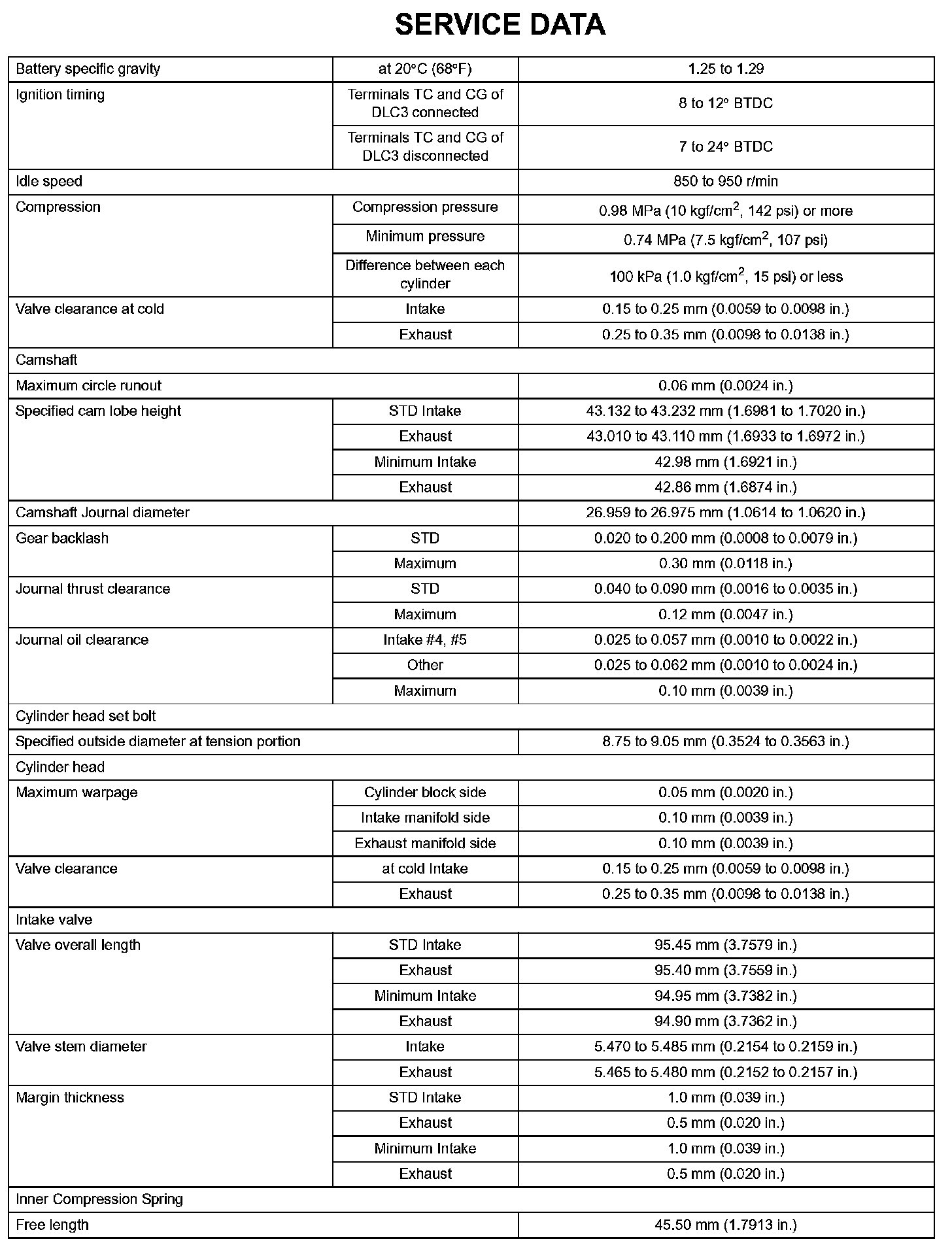 Engine Mechanical-Service Data (Part 1):