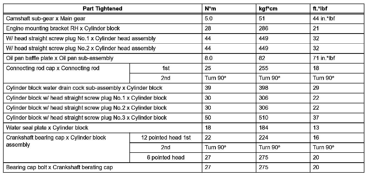 Engine Mechanical-Torque Specifications (Part 1):