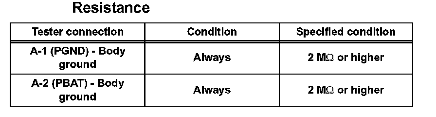 b. Using a megohm tester, measure the resistance according to the value(s) in the table.