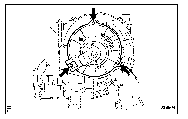 a. Install the cooling unit motor with fan sub-assembly with the 3 screws.