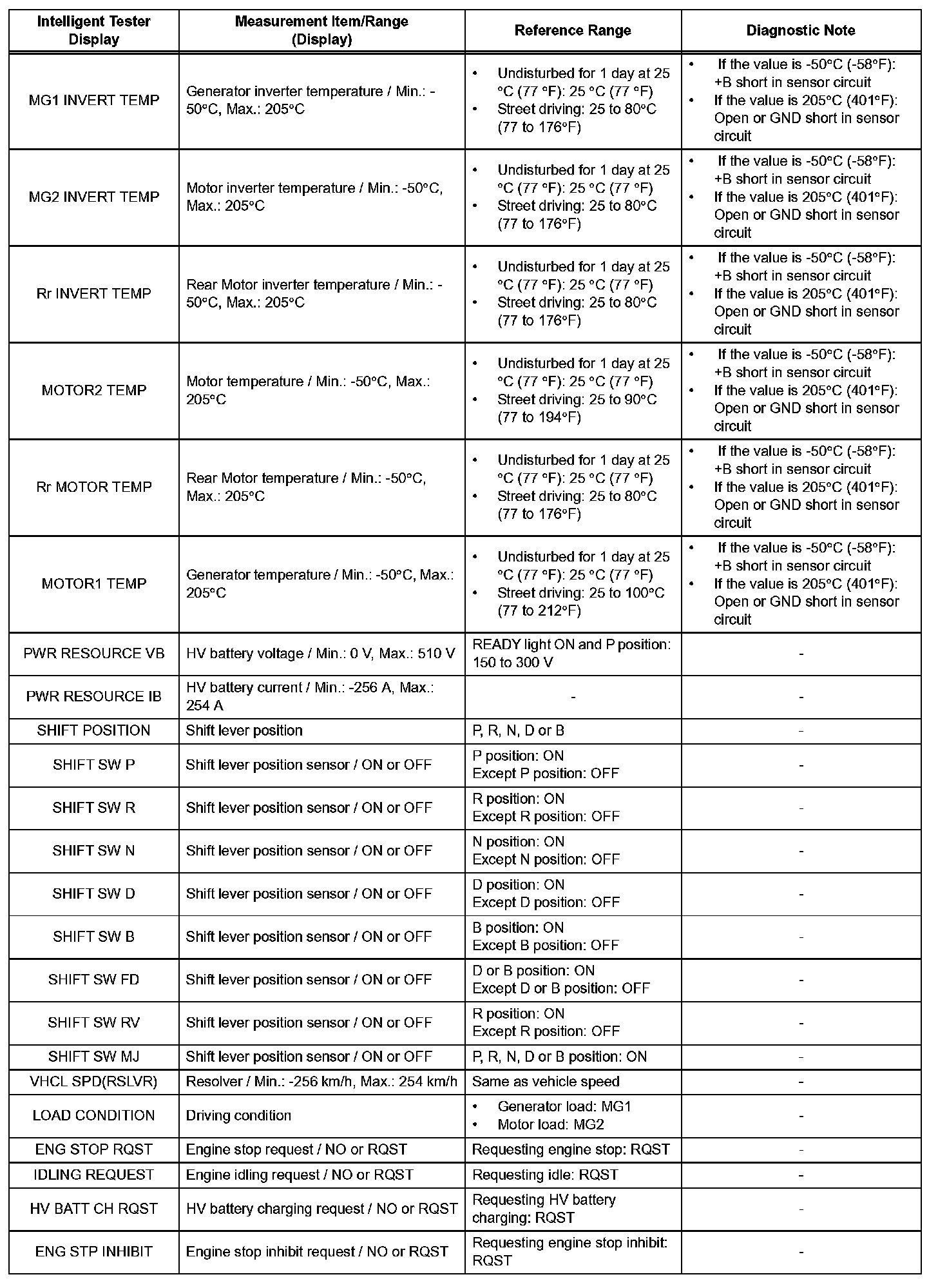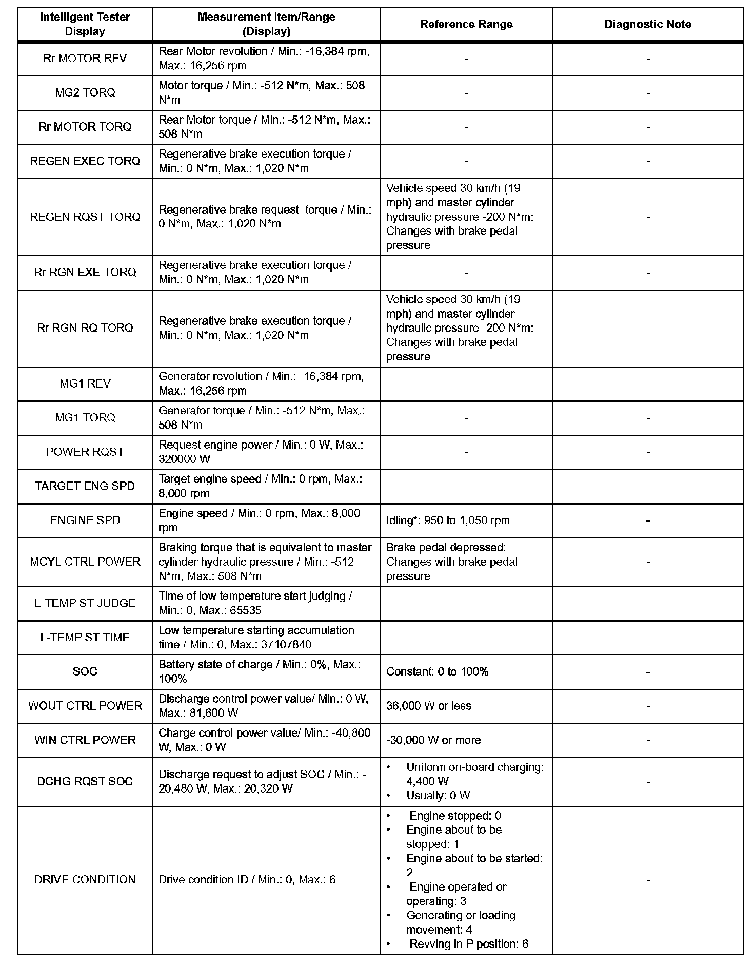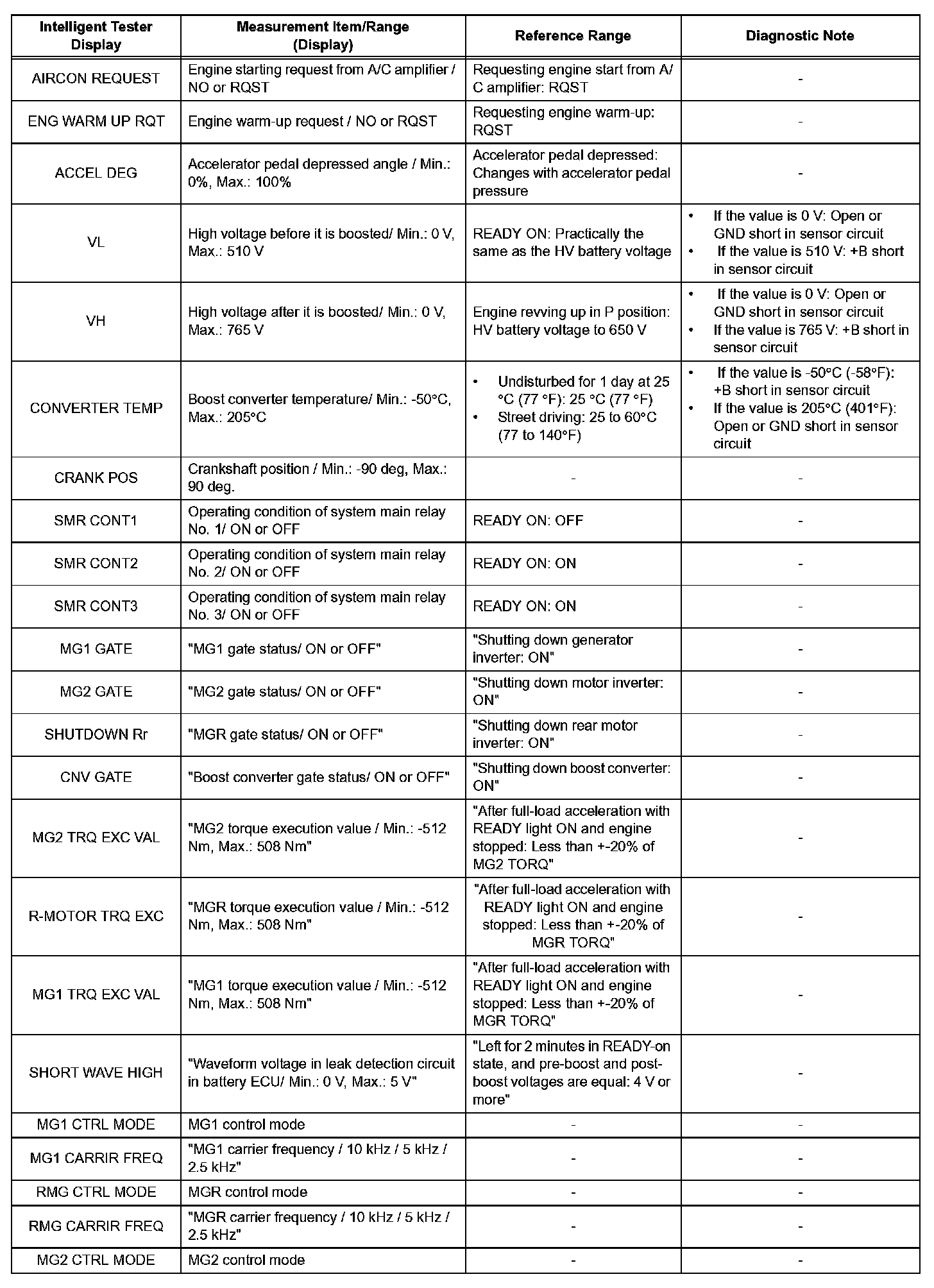 - The DATA LIST values may vary significantly if there are slight differences in measurement, differences in the environment in which the measurements are obtained, or the aging of the vehicle. Thus, definite standards or judgment values are unavailable. Therefore, there may be a malfunction even if a measured values is within the reference range.