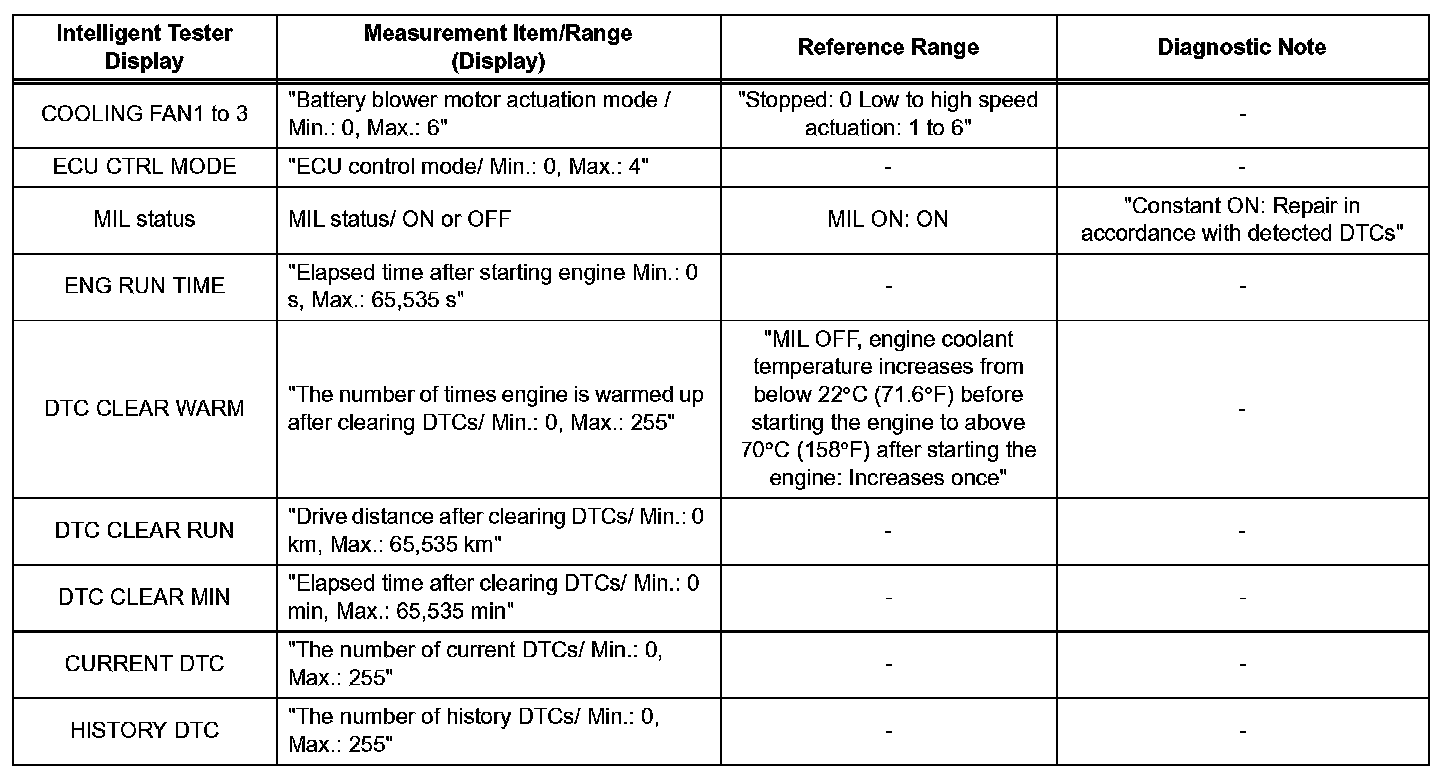 HINT: Using the DATA LIST displayed on the intelligent tester, you can read values including those of the switches, sensors, actuators, without removing any parts . Reading the DATA LIST as the first step of troubleshooting is one method to shorten diagnostic time.