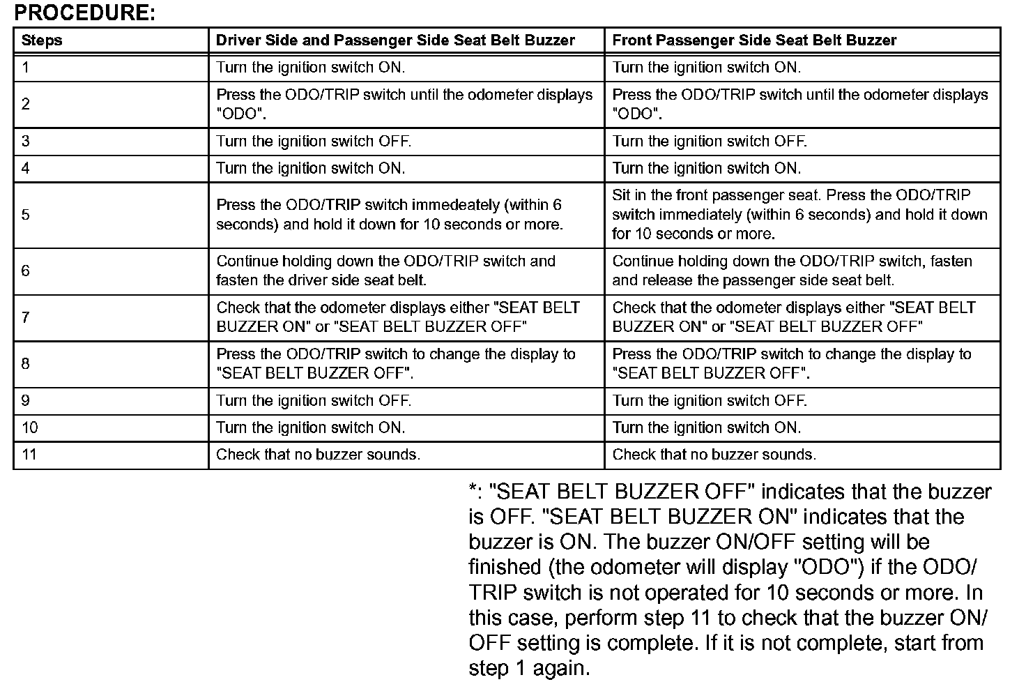 NOTE: Basically, these buzzers should be set on for safe driving. Perform the procedures only if it is necessary to set the buzzer off.