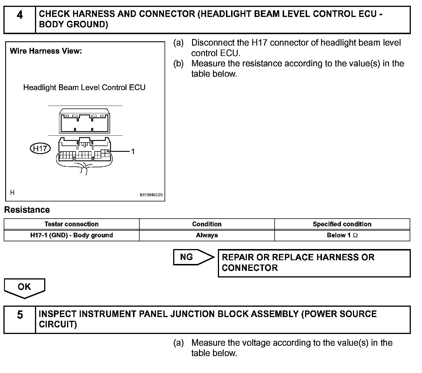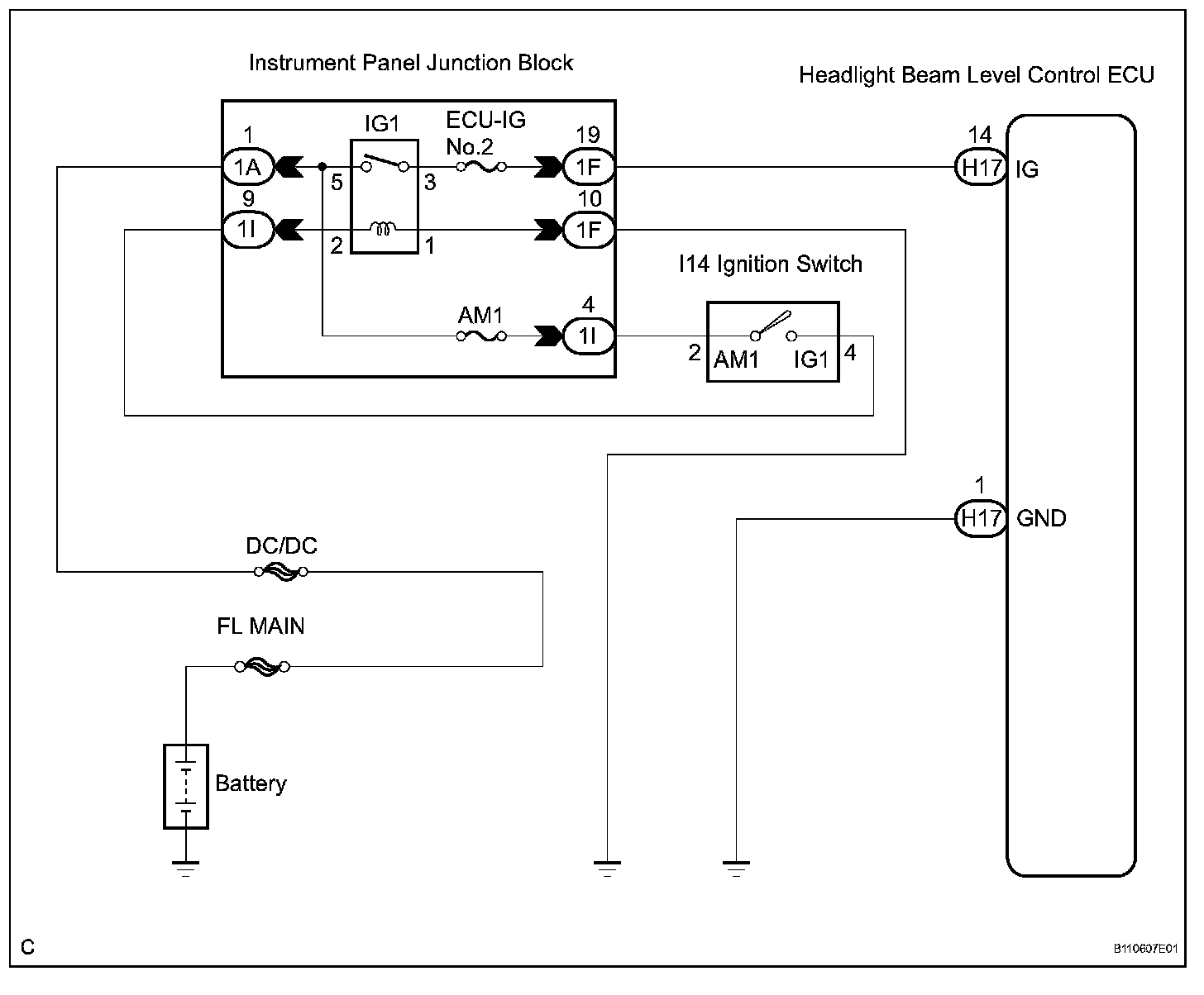Headlight Beam Level Control ECU Power Source Circuit