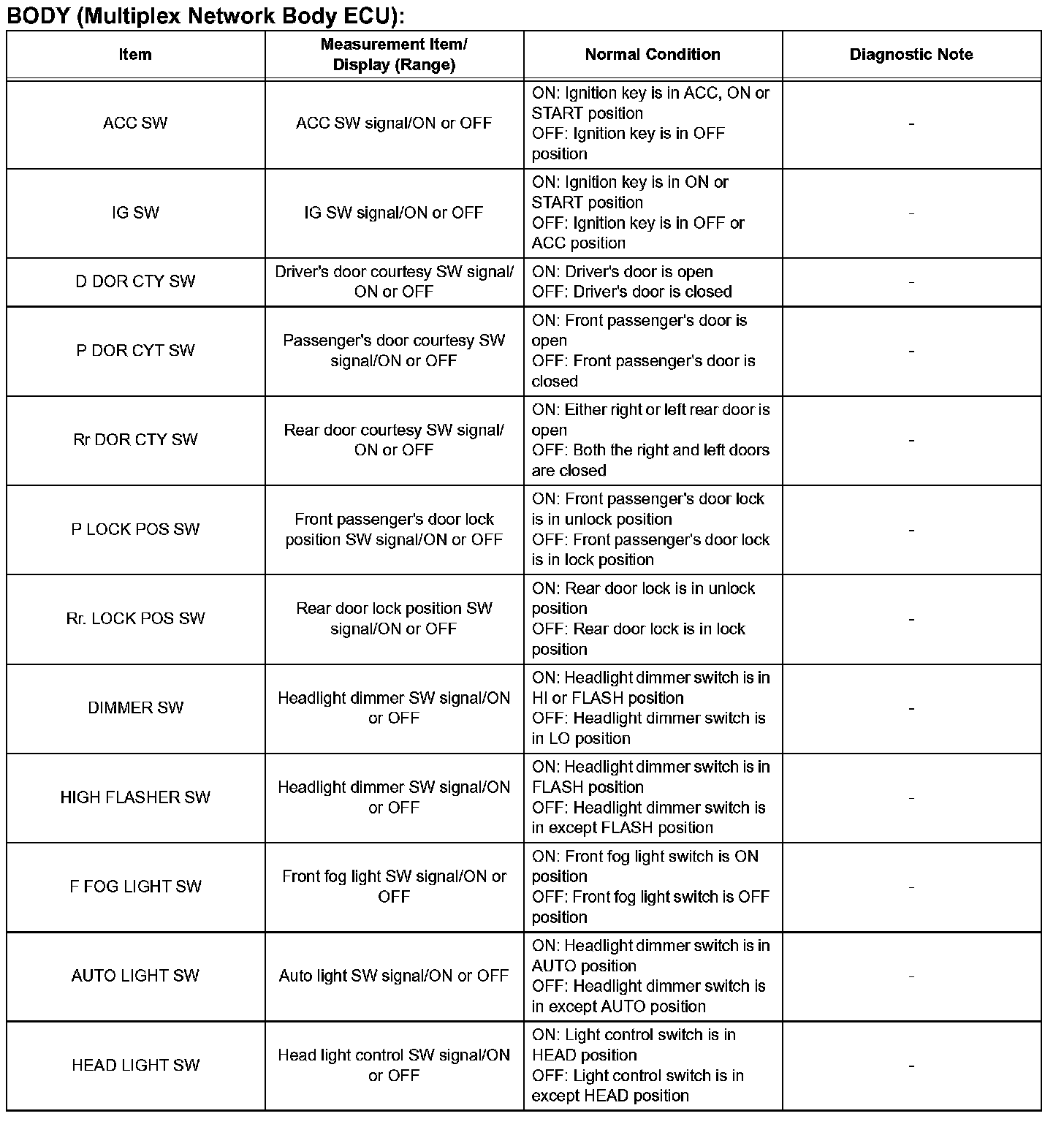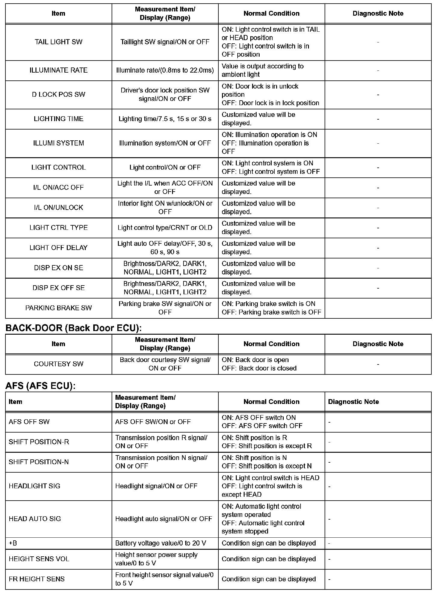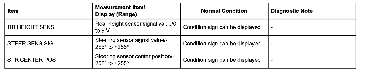 DATA LISTHINT: Using the DATA LIST displayed on the intelligent tester, you can read the value of the switch, sensor, actuator, etc. without removing any parts. Reading the DATA LIST as the first step in troubleshooting is one of the methods to shorten labor time.