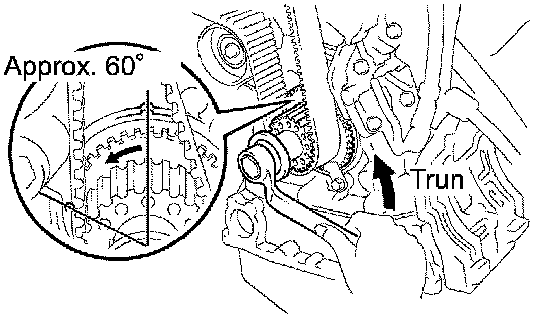 (1) Turn the crankshaft counterclockwise by approximately 60°.